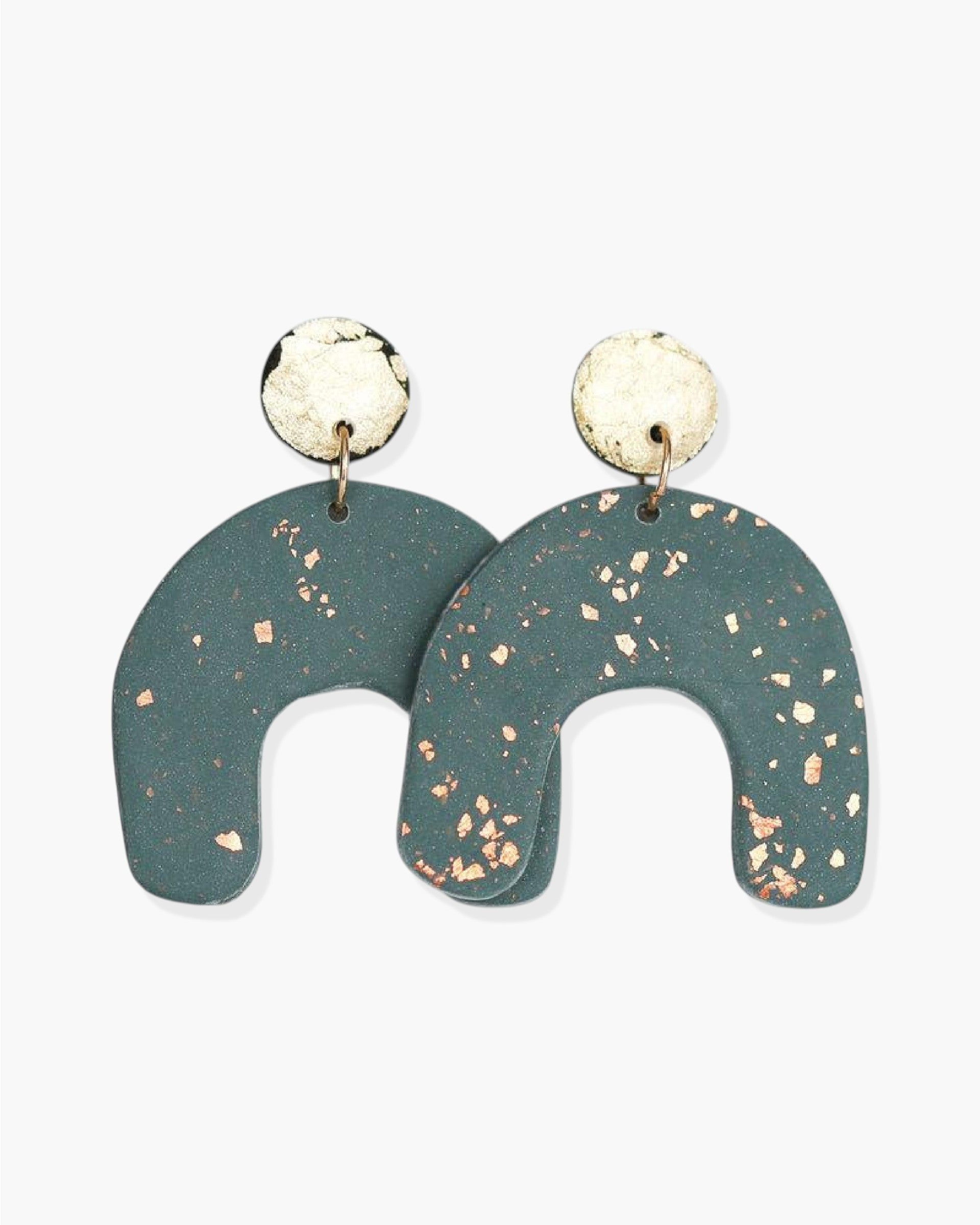 These rich green arch statement earrings are elegant and beautiful. You will fall in love with them.
