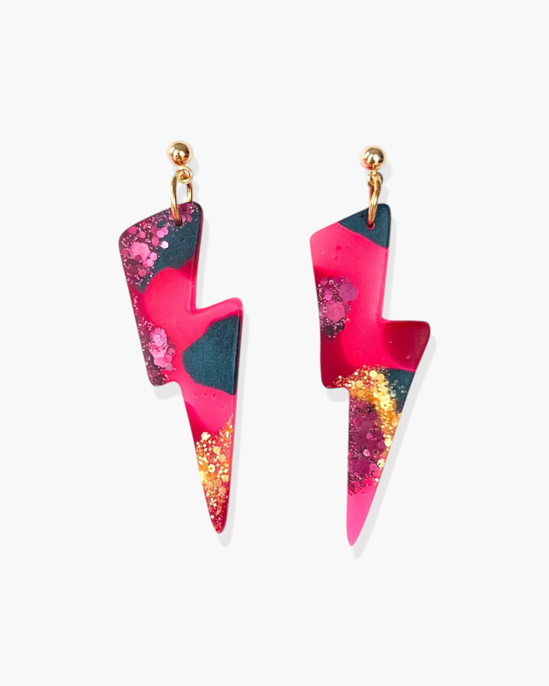 Flash statement earrings, Pink fashion earrings with colourful glitter